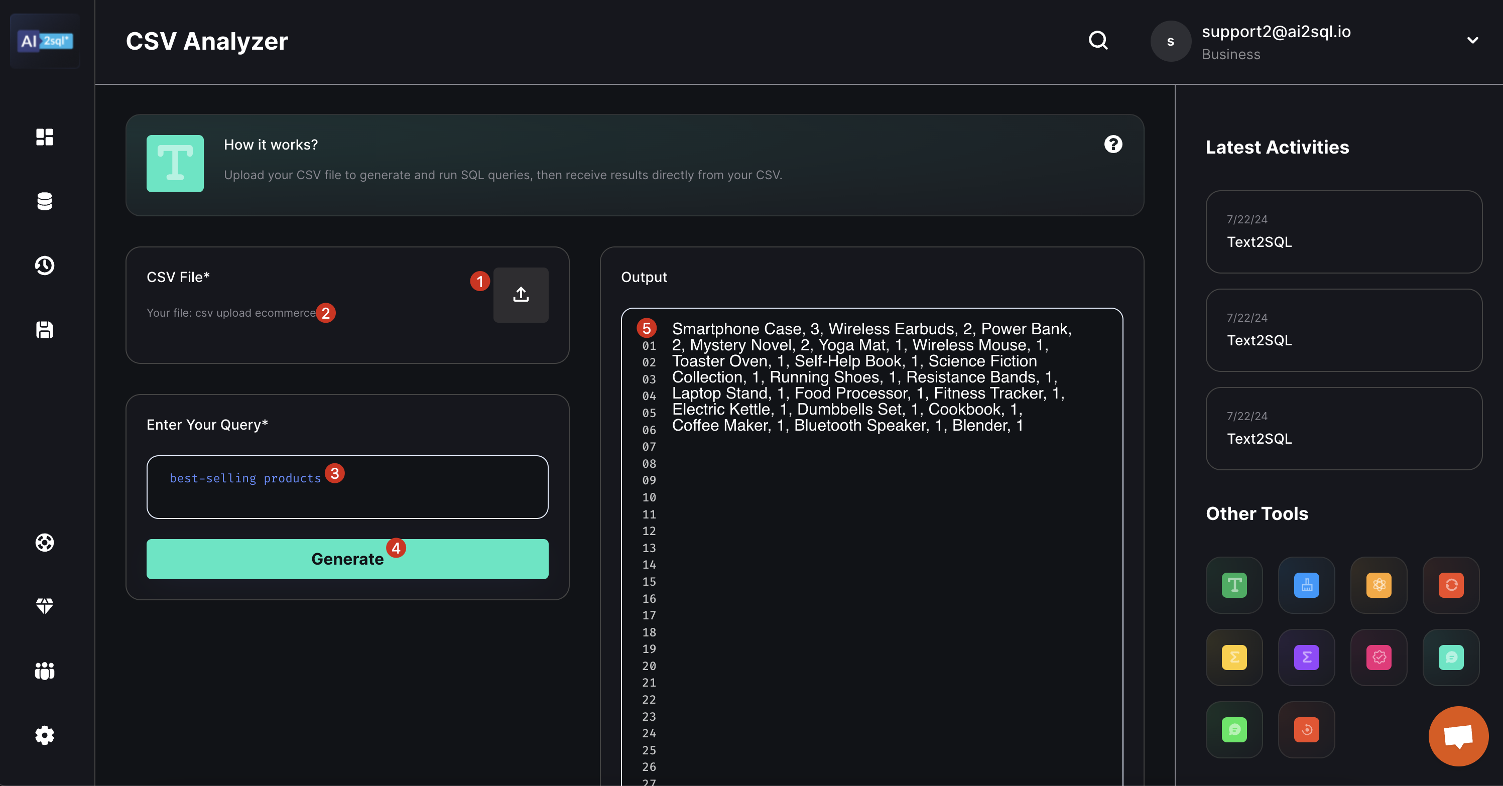 3. The tool generates and runs the appropriate SQL query on your CSV data.